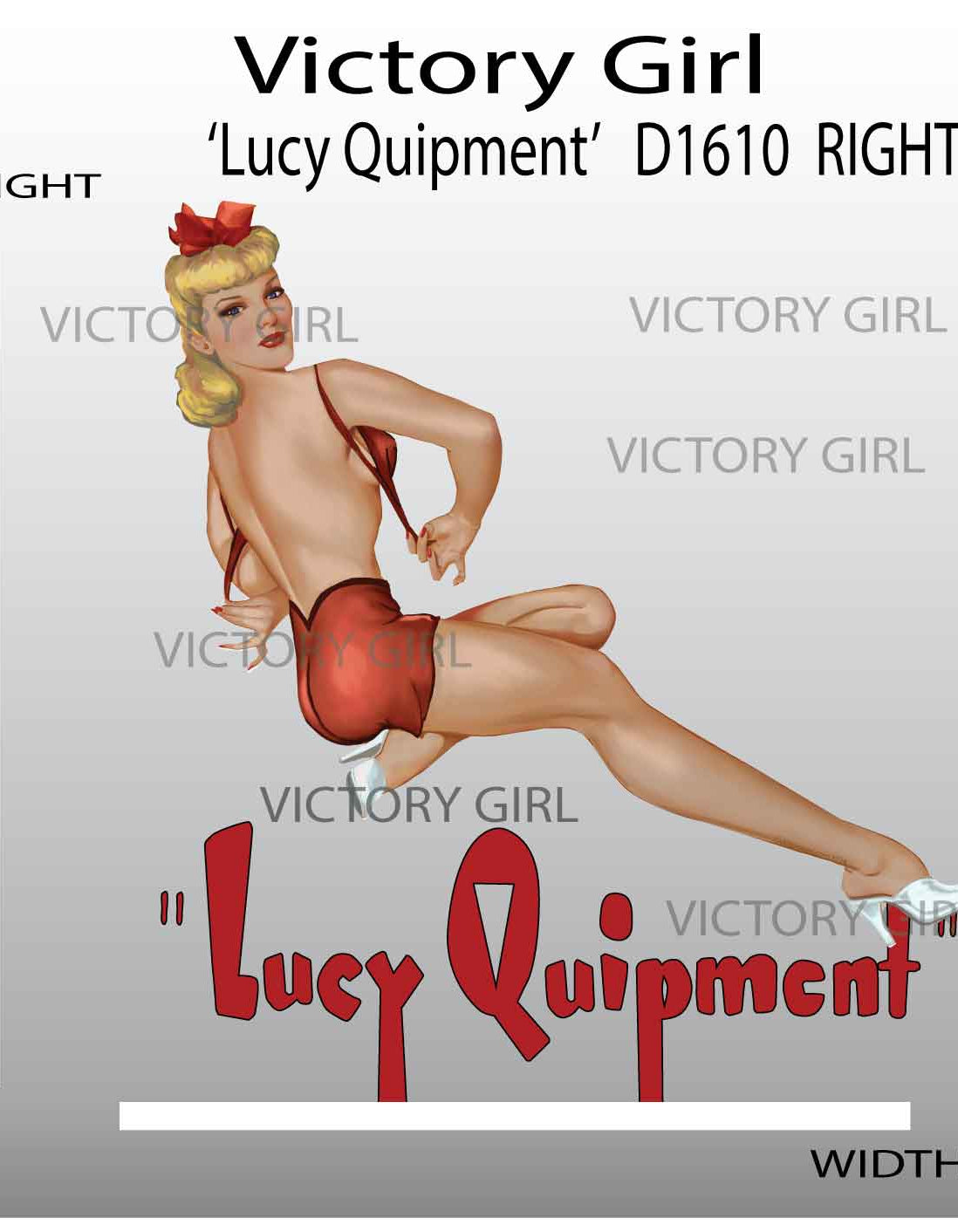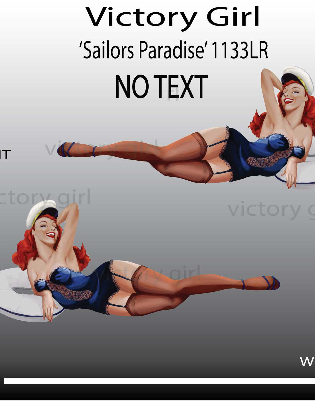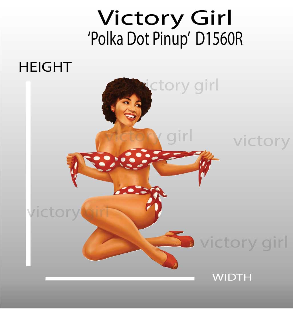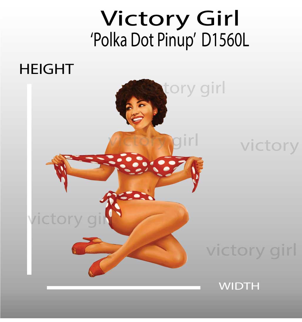 Victory Girl nose art designs are available as contour-cut vinyls! We print our designs on high performance, marine-grade laminated vinyl, suitable for use on exterior surfaces such a boats, aircraft, RVs and vehicles. We work closely with our partner printer to give you high performance vinyl designs at a reasonable price! We do cut custom sizes! Contact us for your specific needs!