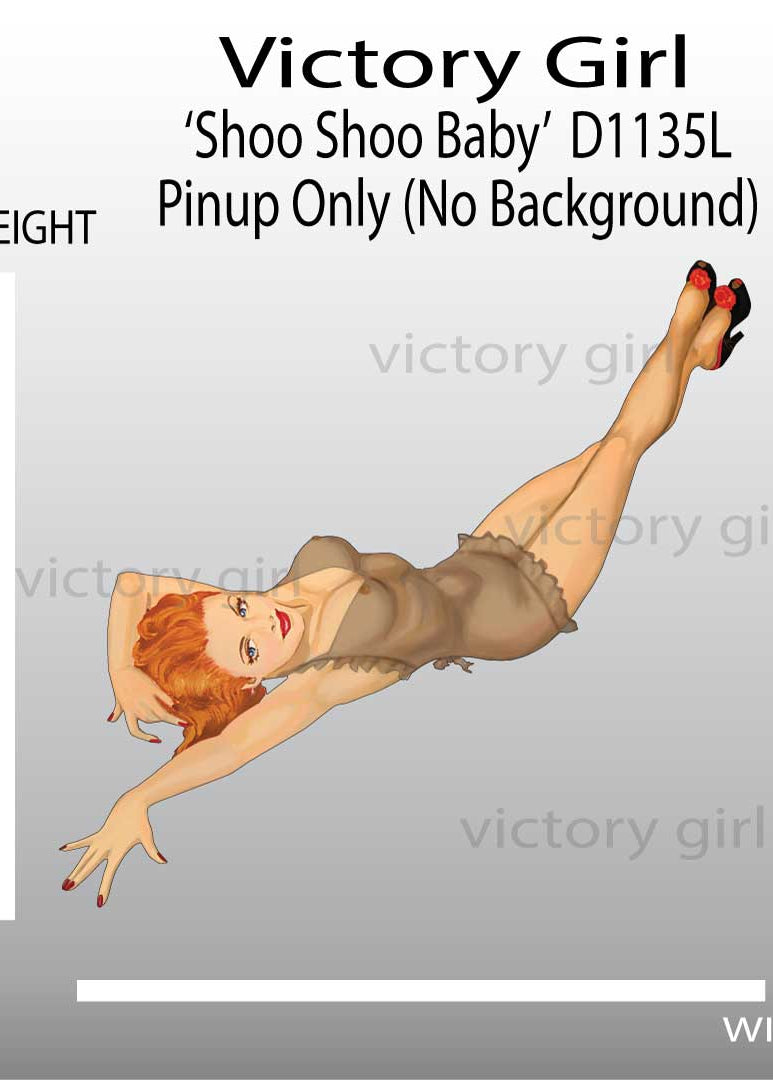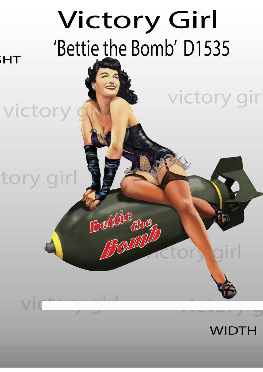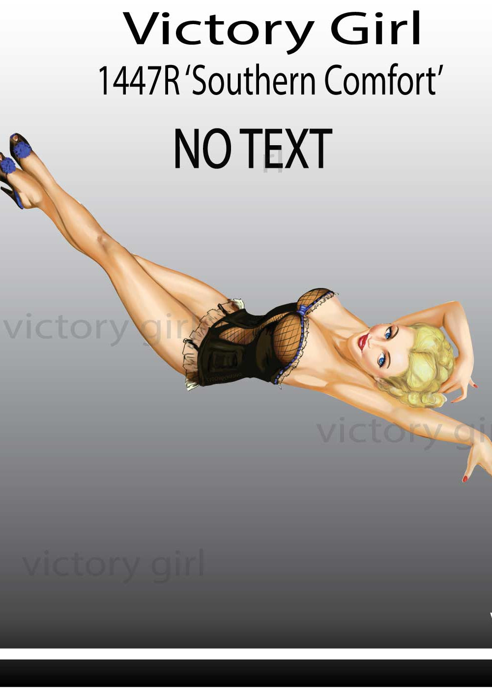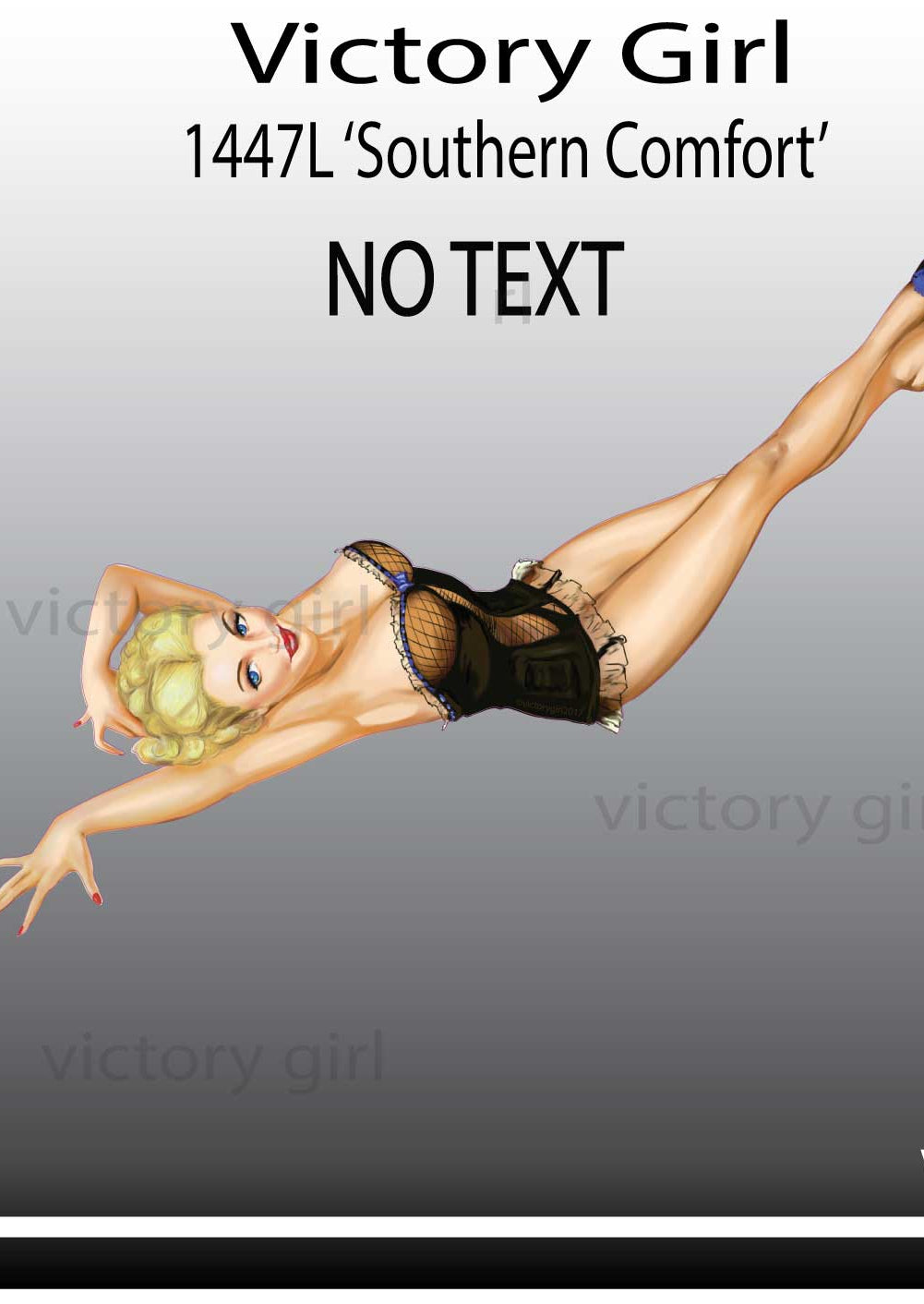 Victory Girl nose art designs are available as contour-cut vinyls! We print our designs on high performance, marine-grade laminated vinyl, suitable for use on exterior surfaces such a boats, aircraft, RVs and vehicles. We work closely with our partner printer to give you high performance vinyl designs at a reasonable price! We do cut custom sizes! Contact us for your specific needs!