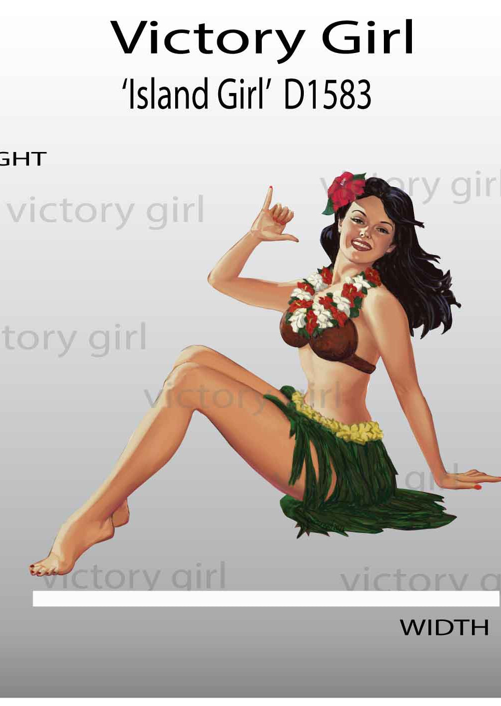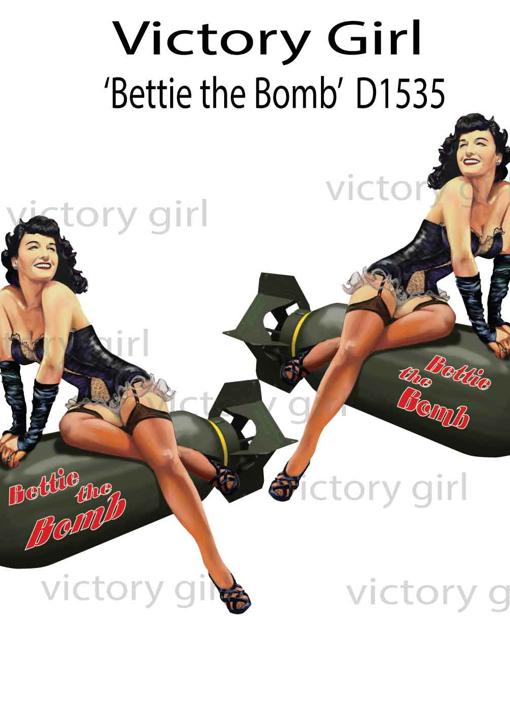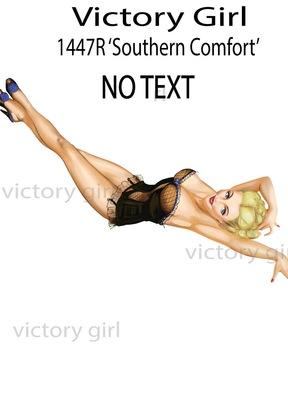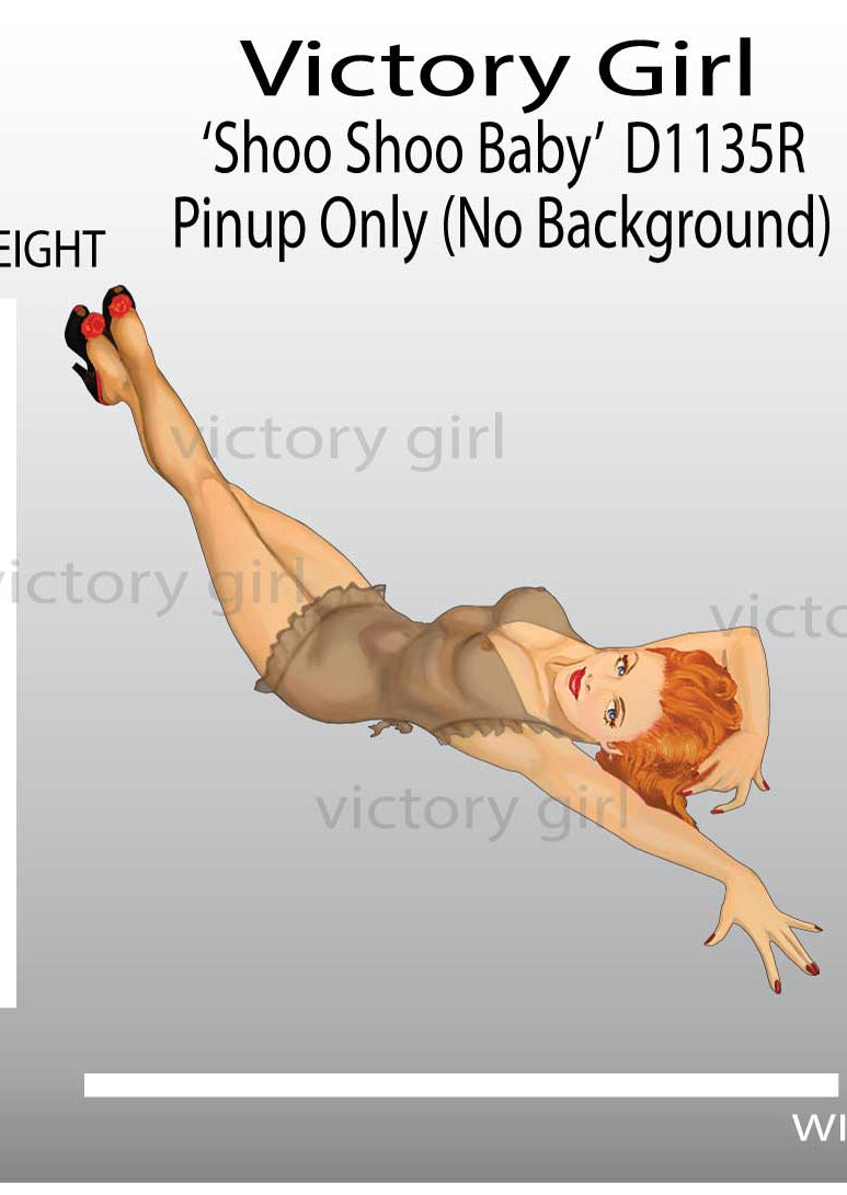 Victory Girl nose art designs are available as contour-cut vinyls! We print our designs on high performance, marine-grade laminated vinyl, suitable for use on exterior surfaces such a boats, aircraft, RVs and vehicles. We work closely with our partner printer to give you high performance vinyl designs at a reasonable price! We do cut custom sizes! Contact us for your specific needs!