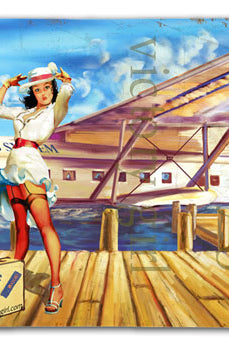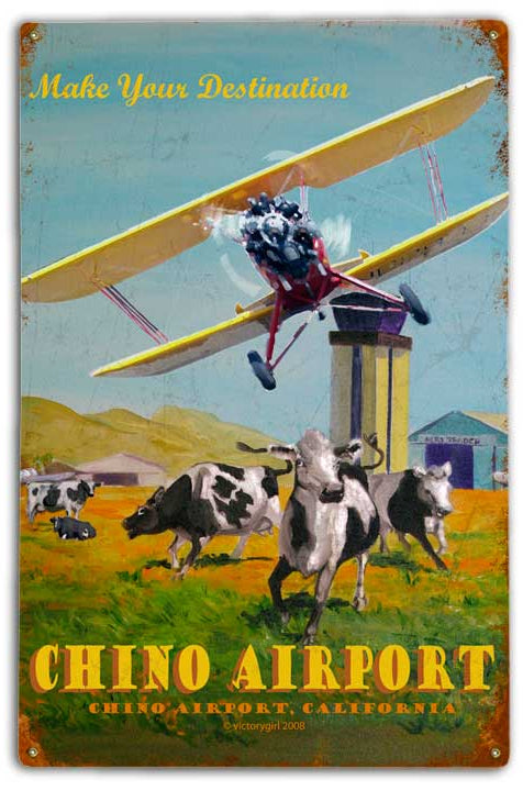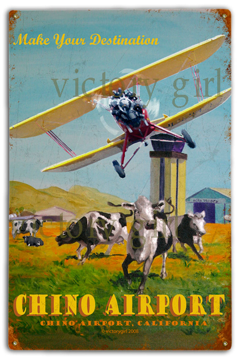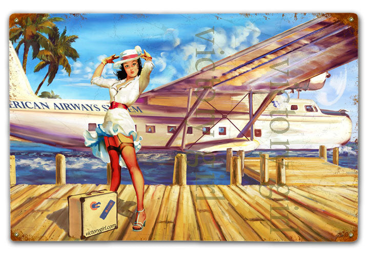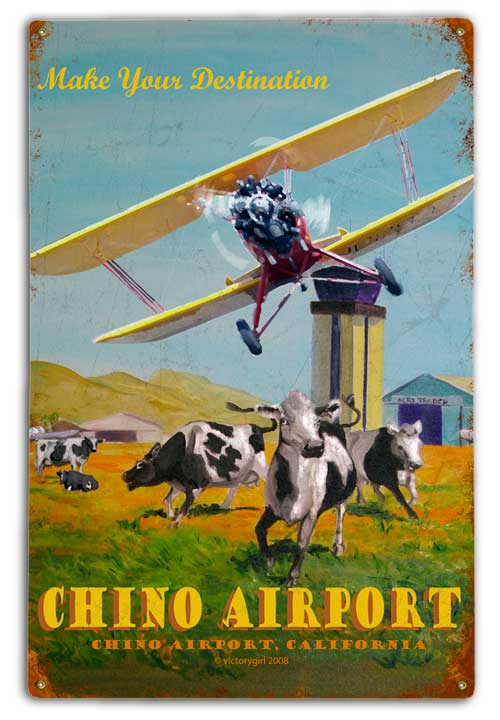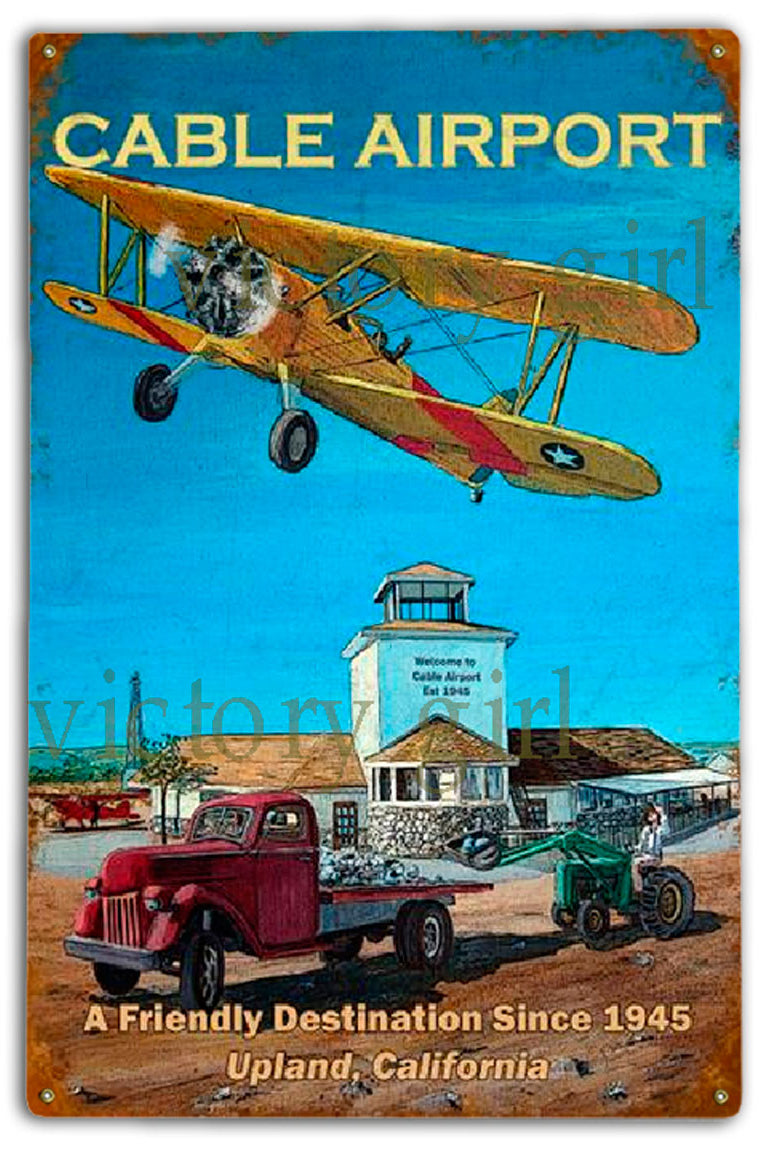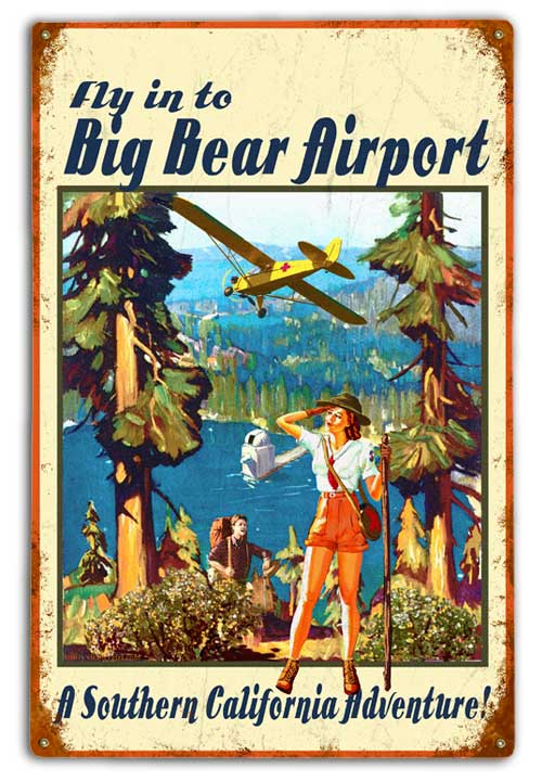 Victory Girl recreates the golden age of aviation in these original aviation scenes, printed to distressed tin 12 x18". Original artwork by artist Jerri Bergen, celebrating a simpler time of local aviation airports. Collect them all!