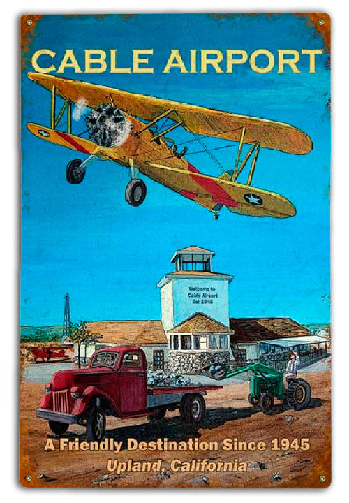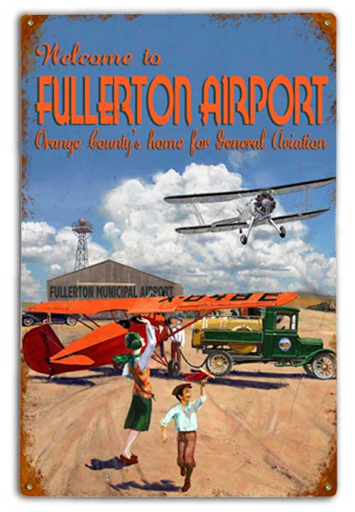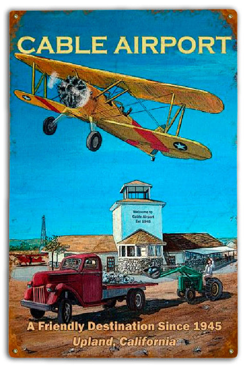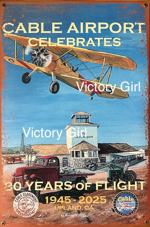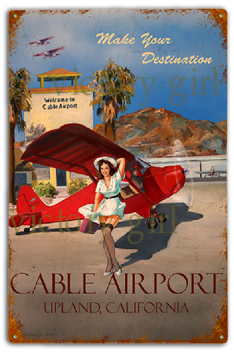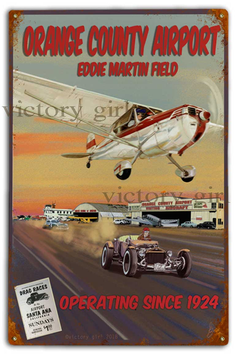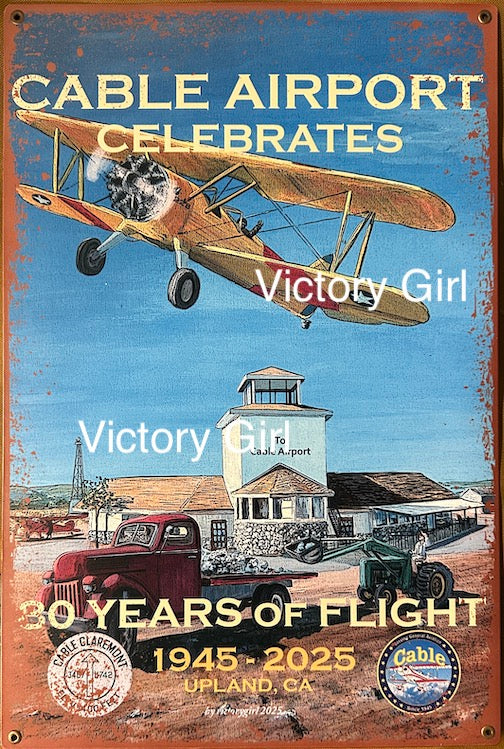 Victory Girl recreates the golden age of aviation in these original aviation scenes, printed to distressed tin 12 x18". Original artwork by artist Jerri Bergen, celebrating a simpler time of local aviation airports. Collect them all!