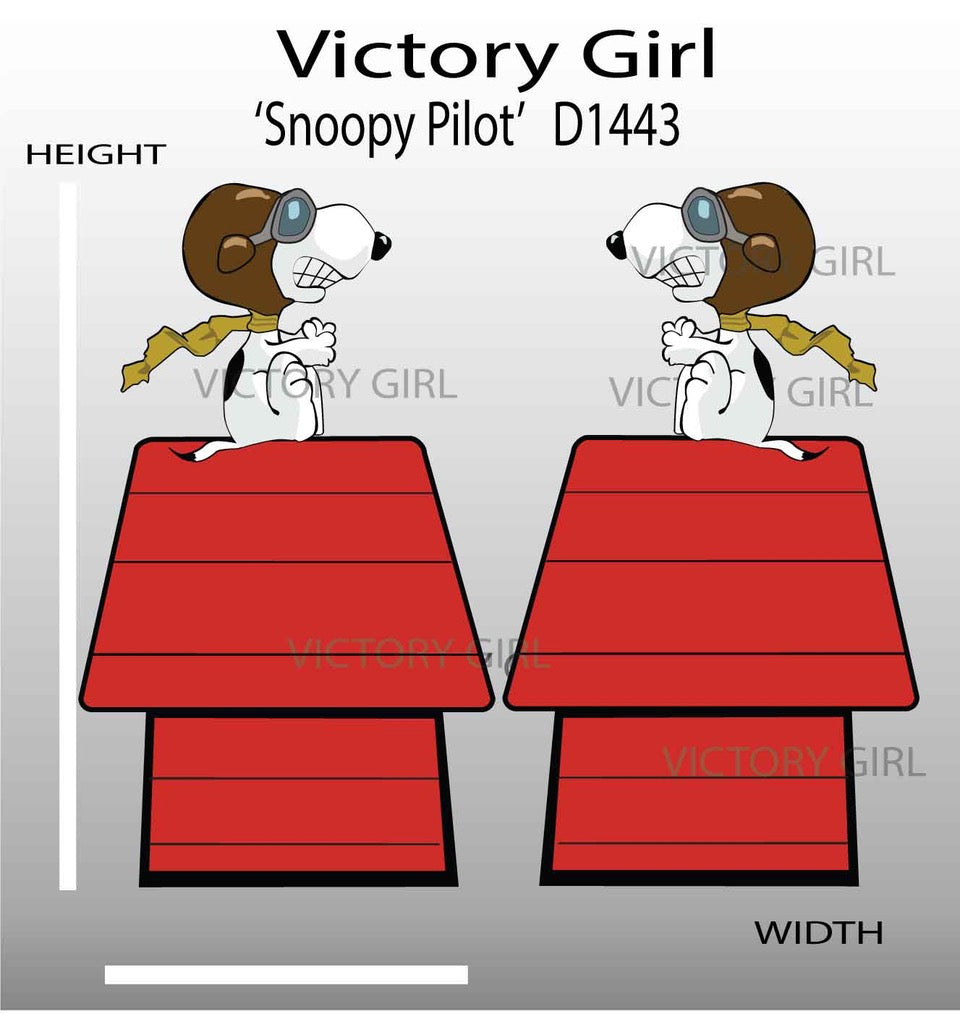Snoopy on Doghouse. Decal length varies by height dimension of 4", 6", 8" and 10". Printed on high performance marine grade vinyl material and contour cut. Custom sizes are available, contact us to discuss your special order. Product number D1443