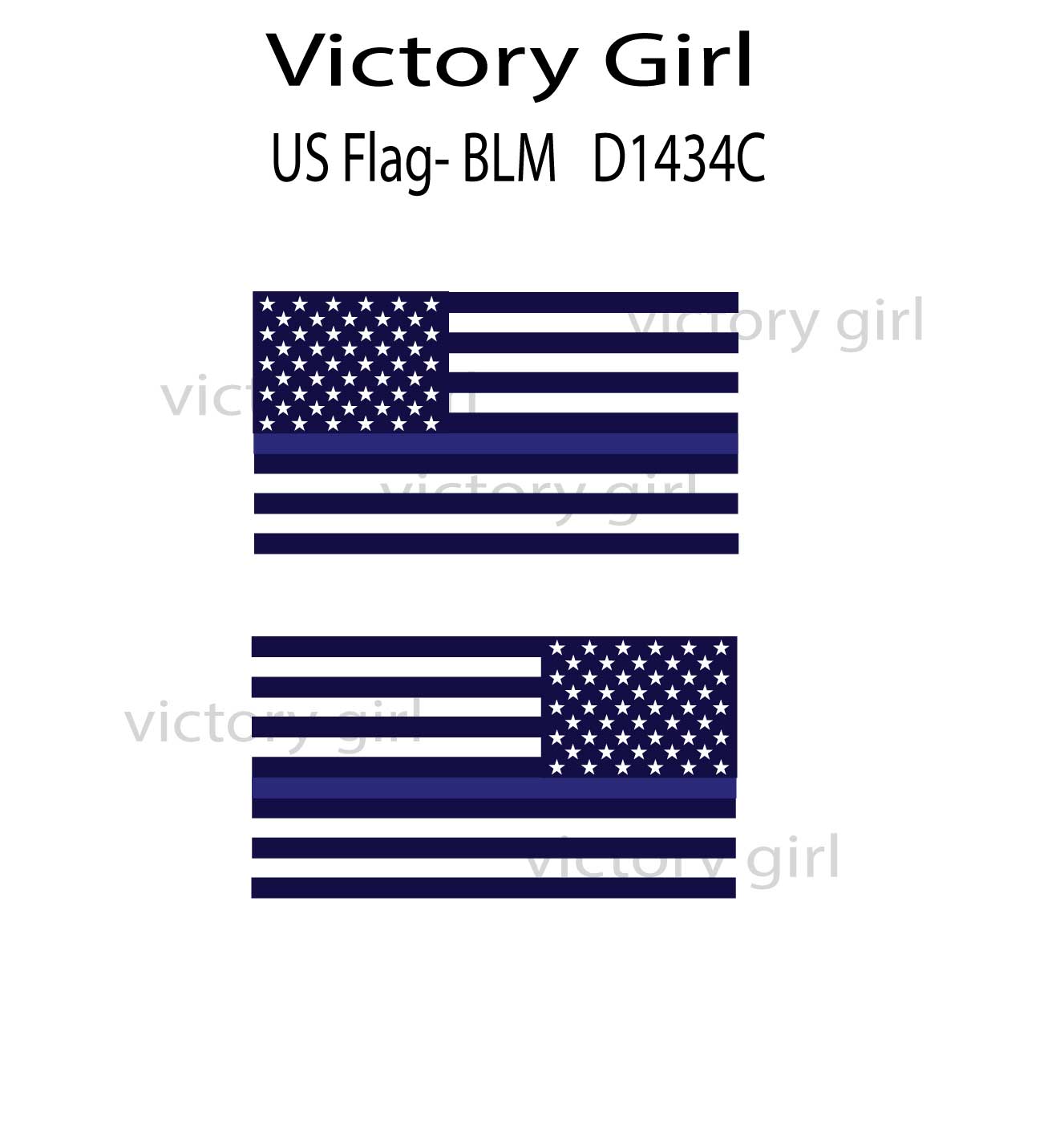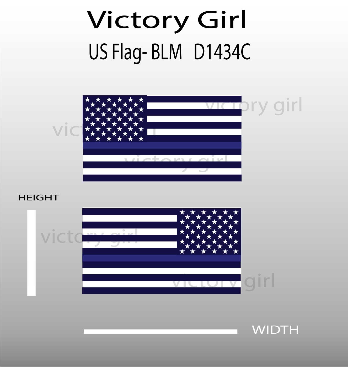 The US Flag, in black with a single blue line. Symbolizing respect and understanding for the families of officers killed in the line of duty—including suicides. Decal prints provided by width of 4", 6", 8" or 10". Left and right facing versions. Printed on high performance marine grade vinyl material. Custom sizes are available, contact us to discuss your special order. Product number D1434C