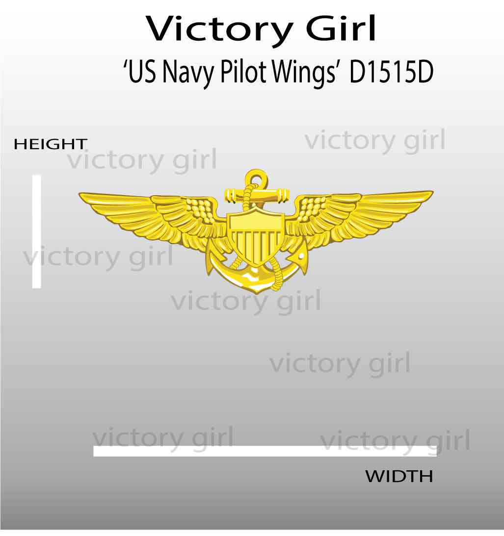 US Naval Aviator Wings. Issued to commissioned officers or warrant officers qualified as a crewed aircraft pilot warrant officers of the US Navy, Marine Corps or US Coast Guard. Decal width of 3", 6" and 8", no white edge. Printed on high performance marine grade vinyl material. Custom sizes are available, contact us to discuss your special order. Product number D1515D